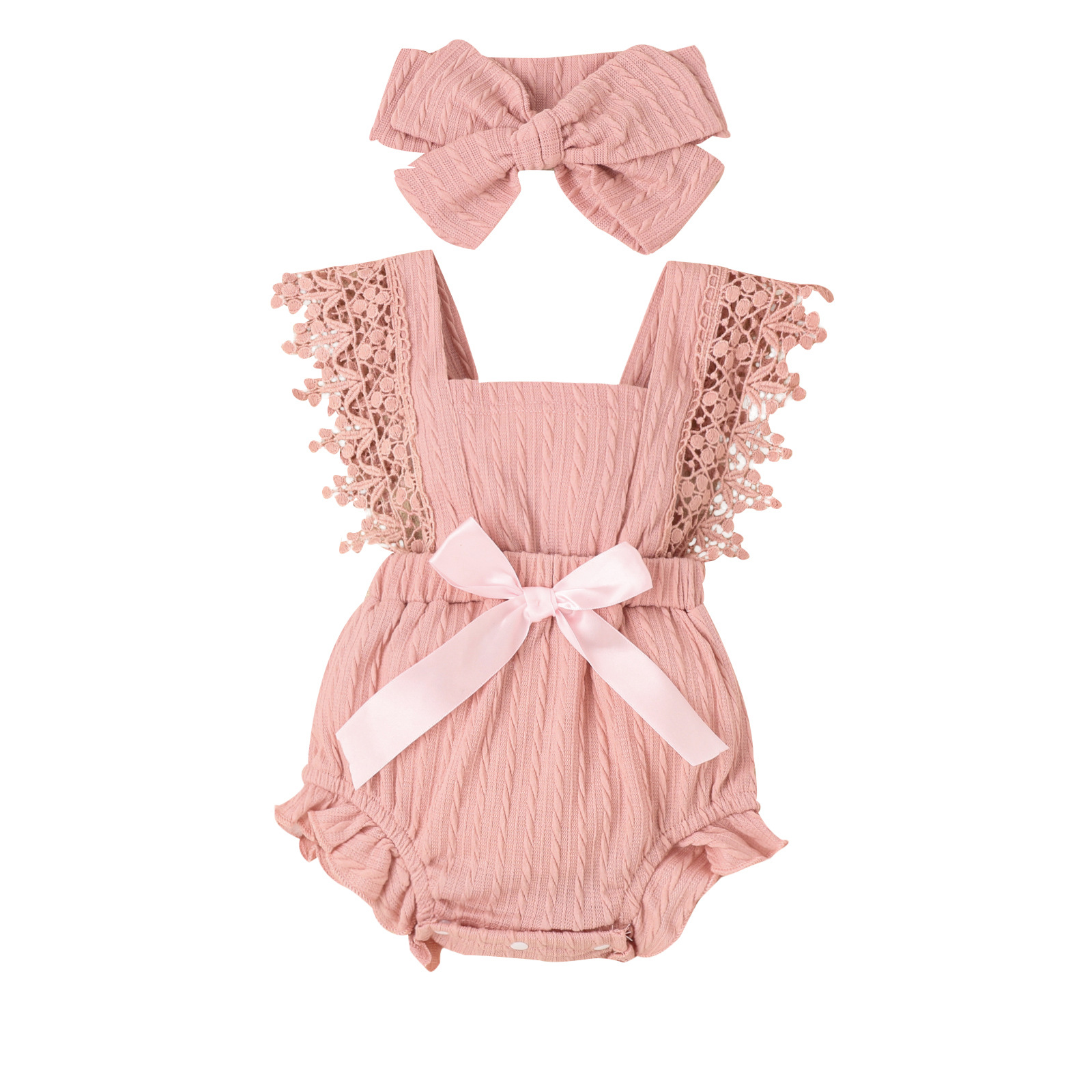 Baby Girl Summer Romper - Sleeveless Cotton with Lace and Bow